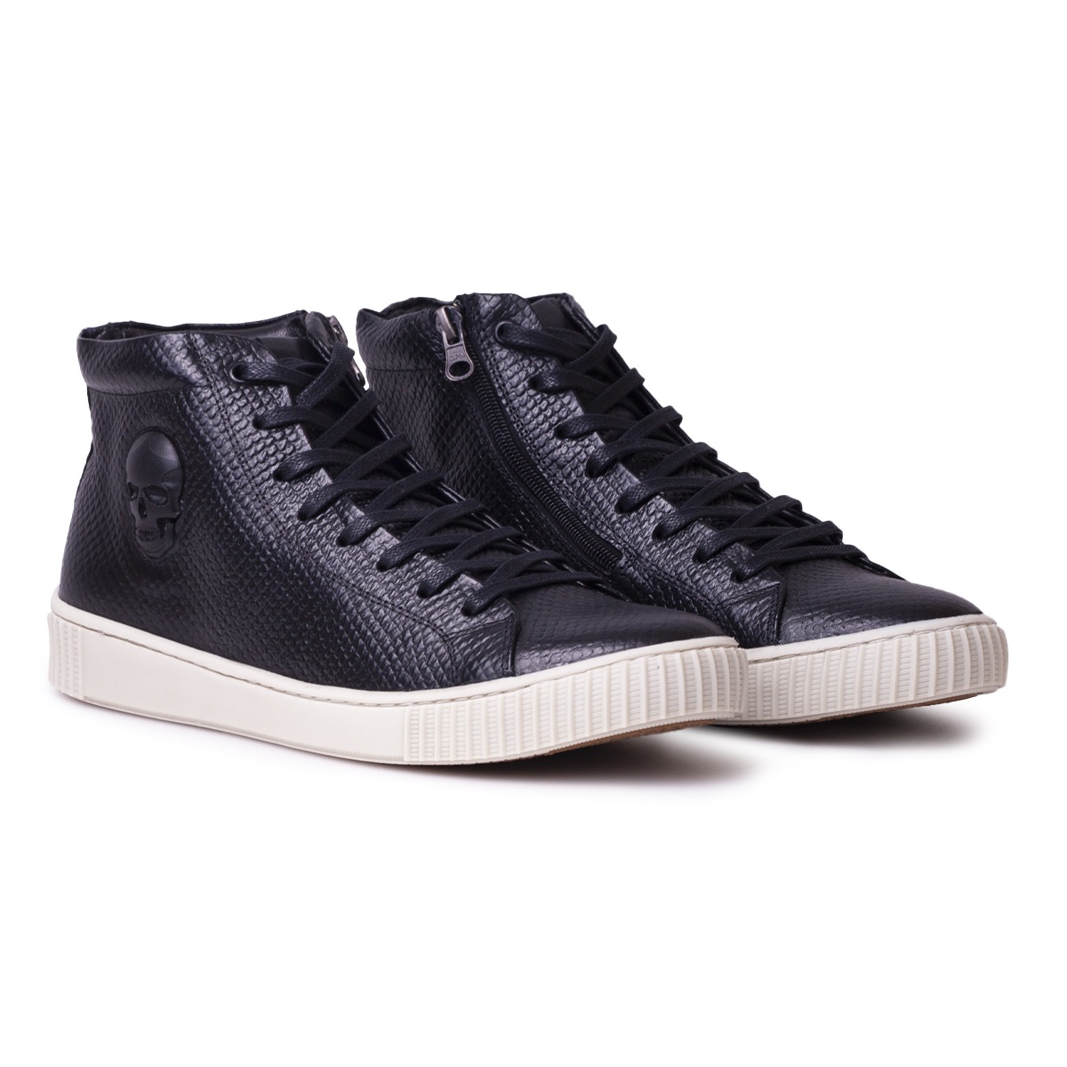 Tênis da Linha Steve & Jow Black Skull com estampa Snake, feito de material nobre com brilho escovado, possui detalhe em caveira na lateral, é leve e macio, um tênis extremamente confortável para você que deseja expressar seu estilo de vida através da moda.